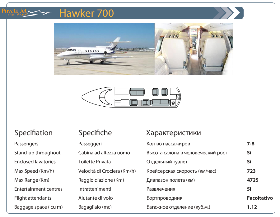 With Private Jet, you can book any type of the aircraft to best accommodate travel needs. Thanks to our extensive fleet, we are able to offer a private jet of any category from "Light" to "Heavy" and from "Executive Jets" to "Airliners". There is no need to be an expert of air transport industry to make the right decision. Our customer service specialists will help you select the most suitable aircraft to meet your passenger, baggage amount and distance requirements. You will only have to make the final choice and make a booking. Take a look at the list of our aircrafts on the right hand side of this page. Click on each of them to view the photos, interiors and technical specifications.